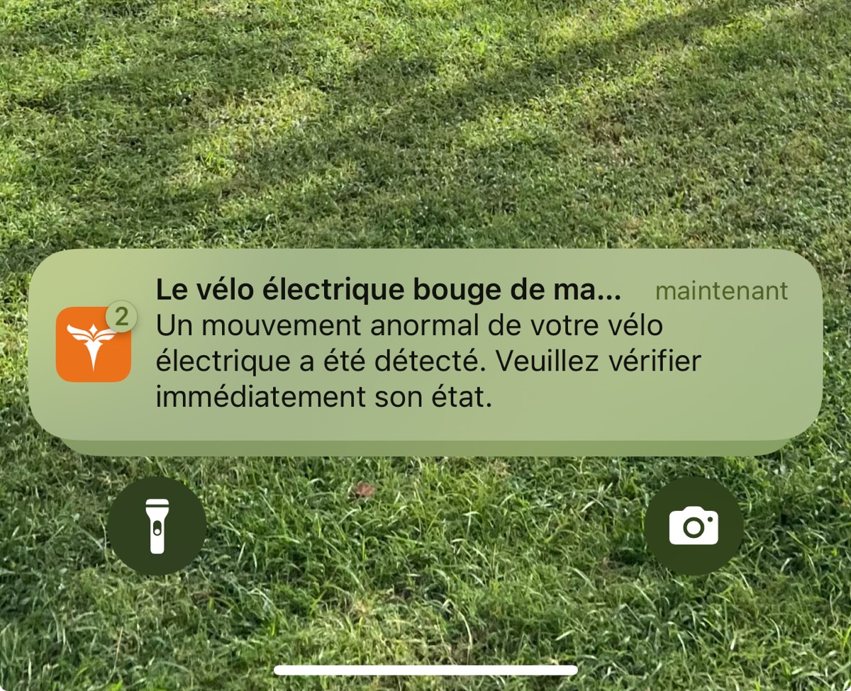Une notification est envoyée sur votre téléphone dès que le vélo est déplacé.