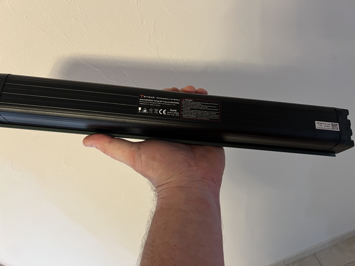 La batterie du MapFour N1 Air ST est de bonne facture. Elle est équipée de cellule Samsung avec une capacité de 360 Wh. Légère, environ 2,3 kg, elle est totalement intégrée sous le cadre, ce qui donne au vélo un aspect très sobre. La silhouette reste fine.
