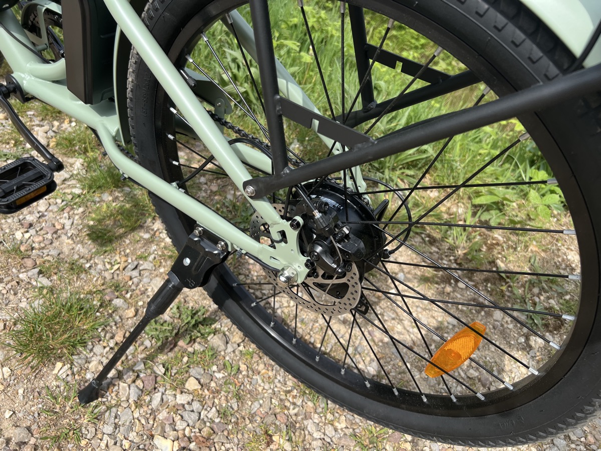 Le moteur est situé dans la roue arrière. Il développe 250 W, conformément à la législation, avec un bon couple de 50 Nm. C’est bien et adapté pour la route et la ville, y compris s’il y a des dénivelés.