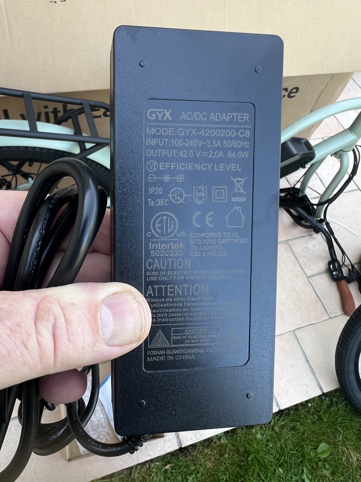 Elle se recharge en 7 à 8 heures par l’adaptateur 42v/2 Ah livré. Son embout jack DC est classique et il est donc facile de s’en procurer un d’une autre marque.