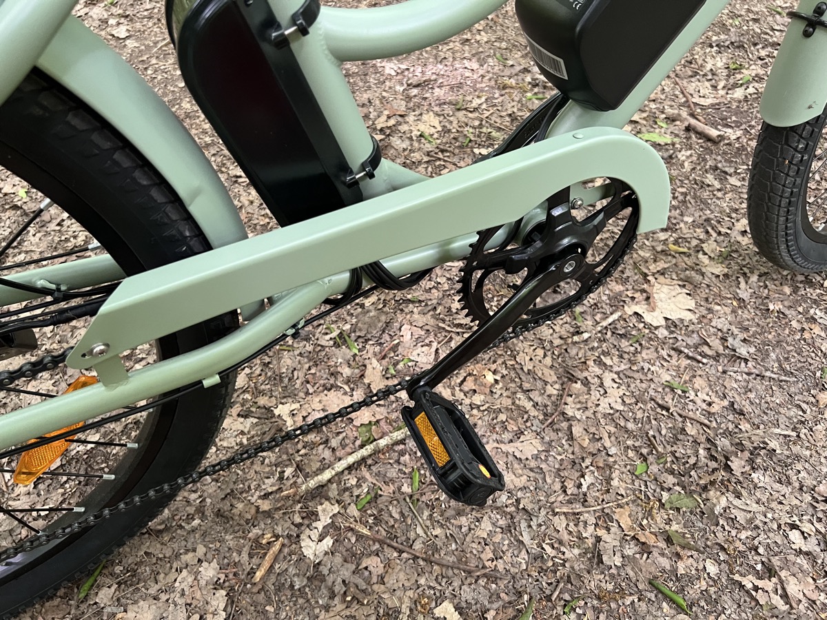 Le pédalier est équipé d’un capteur de cadence. Il est bien réactif en raison de ses 12 aimants. Dès un quart de tour de pédale, le vélo vous assiste. avec un ressenti naturel. ce qui n’est pas une évidence sur ce type de capteur.