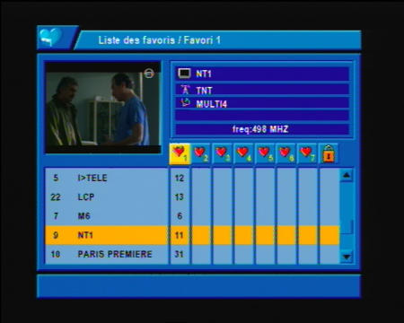 Vous pourrez également classer toutes vos chaînes dans 7 listes de favoris différentes, la liste 1 étant celle par défaut.