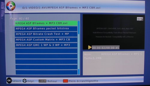 Les produits AKIRA font mieux puisque nos fichiers tests se sont trouvés relus sans déformation ¡ Nous affirmons donc qu’il est possible d’utiliser le décodeur TNT en lecteur multimédia de salon. L’interface n’est pas très sexy mais l’essentiel des besoin est couvert tout en lecture vidéo, musique ou audio.