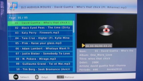 Côté fichier musique, les décodeurs acceptent les fichiers MP3 et WMA.