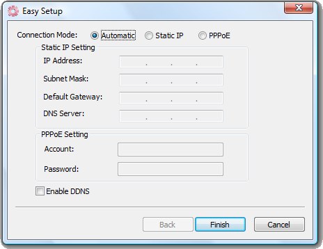 - Le second écran permet de choisir une adresse IP automatique distribuée par votre routeur, une adresse fixe ou encore de saisir un nom de compte Internet et un mot de passe. Ce dernier mode, PPPOE, permet d’envisager de relier directement la box à un MODEM ADSL Ethernet. Cela reste assez anecdotique.