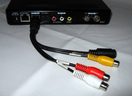 Nous avons fait nos essais avec différents appareils dont un recepteur satellite. Nous avons raccordé le recepteur en composite via un adaptateur péritel via cinch et disposé une des têtes de pilotage infra-rouge sous notre démodulateur. Nous avons ensuite branché un câble RJ45 de notre réseau local sur l’appareil puis procédé à l’installation du logiciel.