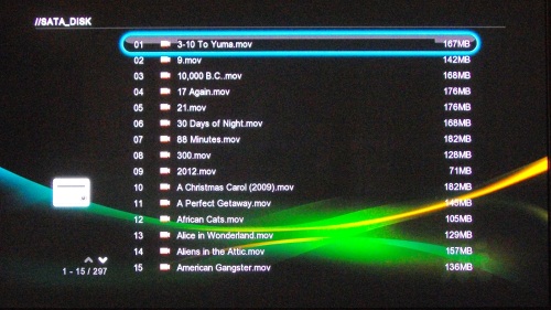 Le navigateur de fichier est très (trop) basique. Le lecteur se contente d’afficher la liste des fichiers sans autre information. Il n’y a pas comme sur certains lecteurs (Dune, Western Digital, …) une possibilité d’afficher une prévisualisation du fichier ou encore une jaquette.