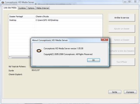 Le lecteur Conceptronic est companible UPNP AV 1.0. Il pourra donc lire du contenu diffusé par un NAS ou un ordinateur muni d’un serveur compatible.