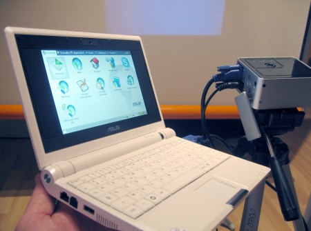 Un EEEPC à une résolution de 800 * 600. Nous étions septiques quant à l’utilisation d’un PC portable traditionnel avec une sortie vidéo en XGA (1024 * 768).