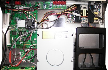 l’intérieur du HD center est surprenant. Nous nous attendions à plus d’intégration et moins de câble apparents. On découvre que le rack SATA interne est connecté en USB.
