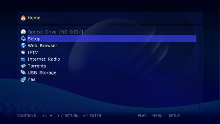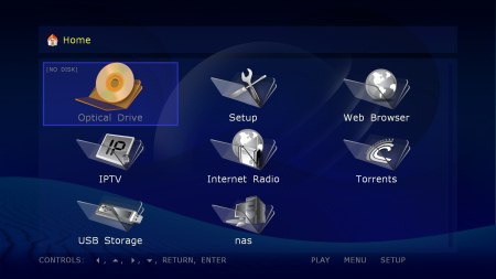 Au premier regard jeté au menu général, aucun doute. Nous ne sommes pas face à un lecteur DVD-VIDEO ou Blu-ray ordinaire , mais bien un lecteur Mediacenter.