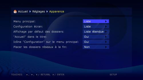 Comme nous l’avons indiqué précédemment l’interface n’est que peu configurable. Cela se fait à travers l’écran Apparence.