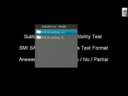 Les sous-titres sont gérés que ce soit sous forme texte (SRT, SUB, SMI ou image DVD SuB/IDX). Même les sous-titres multiples sont compatibles ce qui est rare. Dans cette configuration, un menu apparaît pour le choix du sous-titres.