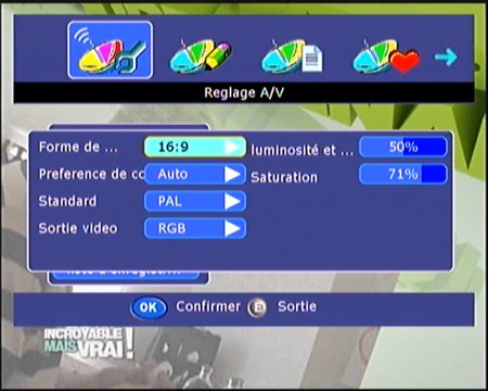 Le menu du récepteur comporte une bande de 7 icones à son sommet.