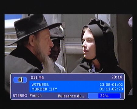 Au changement de chaîne, un bandeau apparaît pendant 3 secondes. Il affiche le nom de la chaîne, du programme en cours, la langue ainsi que l’heure et la force du signal.