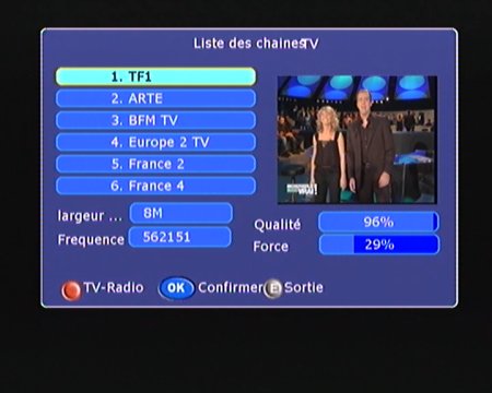 Une pression sur le bouton OK permet de consulter la liste des chaînes avec une vidéo miniature.