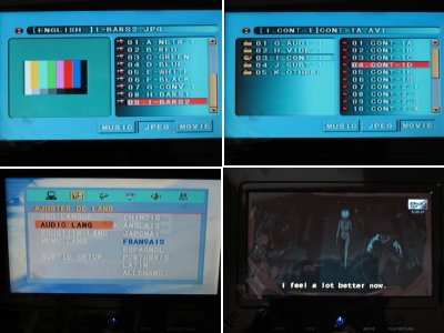 Un seul type de fichier apparaît à la fois : musique, image ou vidéo. Le choix du type s’opère par les touches en façade du lecteur ou la télécommande.