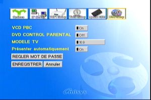 - Le dernier choix du menu de réglage, DVD Setup permet de pré-paramétrer l’appareil pour la lecture de médias DVD et VideoCD.