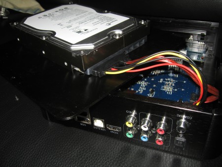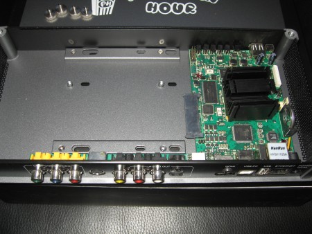 Un rapide coup d’œil à la carte mère (ici installée composant vers le bas) permet de n’avoir aucun doute sur le fait que le HDX 100 et le POPCORN A-110 sont deux produits électroniquement différents !