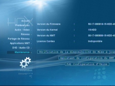 NMT SETUP FAIL !!!. Il nous a été impossible d’installer les applications associées à la première version de firmware fournies par HDX. Nous avons lu tout et son contraire à ce sujet (fichier corrompu, incompatibilité du disque SATA). Suite à la dernière version du 1er octobre, tout est rentré dans l’ordre.
