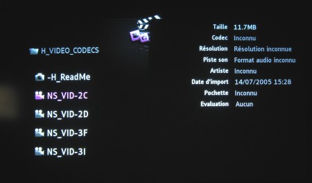 En pressant le bouton info de la télécommande, des informations sur le codage, la résolution d’un fichier apparaissent à l’écran. Nous aimerions retrouver cette possibilité également codée sur ce bouton lors de la visualisation du fichier.