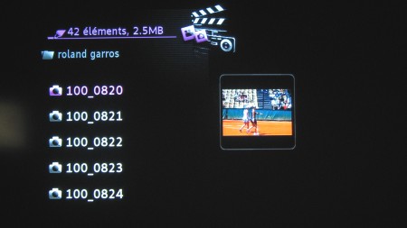 Dans le cas d’images, une miniature apparait dans la partie droite du navigateur. Dans le cas de vidéo, ce cadre est également prévu mais ne propose pas dans l’état actuel du firmware de prévisualisation.