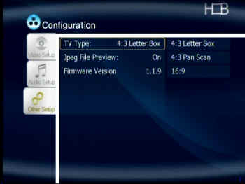 Un premier onglet Video setup permet de choisir son mode de sortie vidéo. En cas de mauvaise manipulation (choix d’un mode incompatible avec votre télévision), vous pourrez utiliser la touche Vidéo de la télécommande pour retrouver une image compatible.