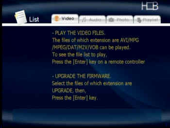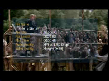 Venons-en maintenant à la partie la plus intéressante de l’appareil : la possibilité de lecture de fichier DivX sur une TV. Signalons de suite que comme tout lecteur qui se respecte, d’autres types de fichiers peuvent être relus (MPEG, MP3, JPEG, ...).
