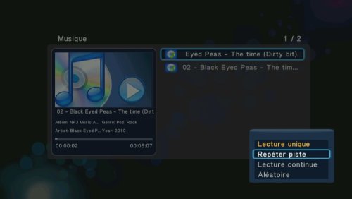 On y trouve l’habituel avec une gestion de liste de lecture, des modes répétition ou aléatoire.