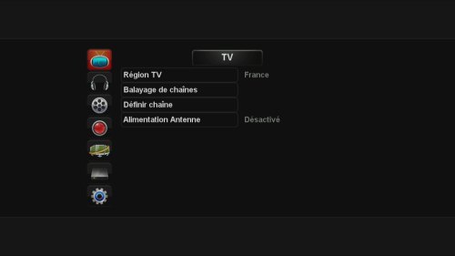 TV permet de rechercher et organiser les chaînes. Contrairement au X82HD, une alimentation antenne type caravane a été prévue.