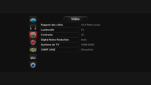 video propose les paramètres habituels de rapport d’écran, fréquence et autre résolution