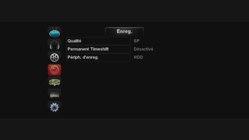Un Timeshift (contrôle du direct) dit permanent peut être activé sur cet écran : des que vous zappez, l’appareil enregistre. Vous pourrez donc revenir en arrière tant que vous ne changez pas de chaîne. Il fonctionne également en mode capture externe.