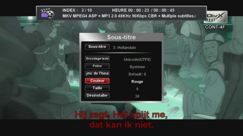 La gestion des sous-titres est complète avec capacité de changer la police, la taille, la position ou encore la synchronisation avec la piste vidéo. L’interface de sélection n’est pas ergonomique cependant.