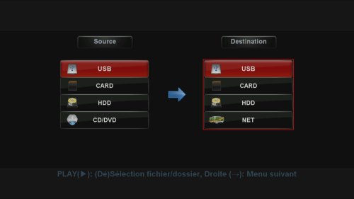 Il offre une copie entre les différentes emplacements en quelques clics de télécommande, y compris à travers le réseau. Il est donc simple d’exporter les vidéos enregistrées ou encore apporter des fichiers multimédia sur le lecteur.