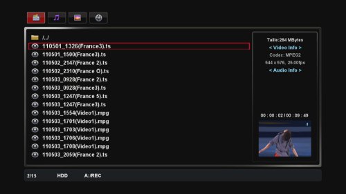L’enregistrement en cours, l’appareil reste pleinement utilisable que ce soit pour lire un fichier multimédia ou encore regarder une autre chaîne. L’appareil est en effet double tuner et il est possible même d’enregistrer deux chaînes en même temps tout en regardant un film ou écouter de la musique.