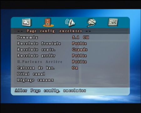 Vous pouvez y définir le mode de sortie (stéréo ou multicanal), la taille des enceintes et la compatibilité ou non avec un caisson de basse).