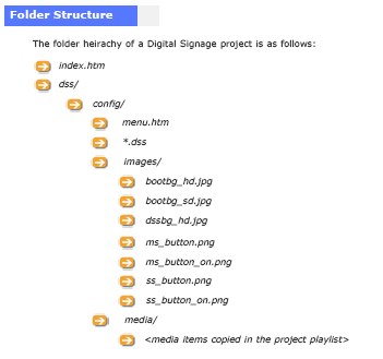 Cette clé interne est formatée en FAT. Un examen sur un ordinateur permet de découvrir une petite structure de fichier comportant un menu ainsi qu’une petite vidéo exemple .