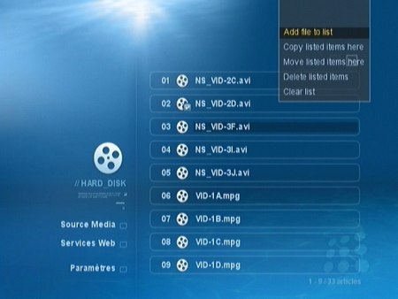 - La touche Filemode de la télécommande fait maintenant apparaître un petit menu qui permet de copier/renommer/supprimer des fichiers de l’arborescence.