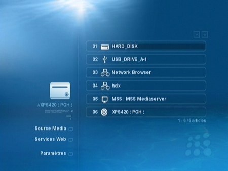 Au démarrage, le lecteur propose le choix de sources multimédia :