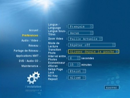 Les sections de paramétrages, traduites en français parfait reçoivent au fil des version de nouveaux paramètres (par exemple le réglage du temps des diaporamas).