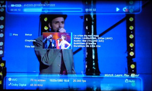 Face à un disque Blu-Ray transformé en image ou structure de fichier le A-200 lira le flux vidéo avec possibilité de sélection de chapitres, pistes audio et sous-titrages (du BD Lite).