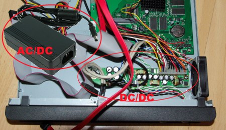 Pire encore, certains fabricants vendent à part le convertisseur DC/DC interne ! Ce convertisseur s’occupe d’alimenter la carte mère à partir de l’énergie reçue via la prise arrière du boitier (un jack généralement).