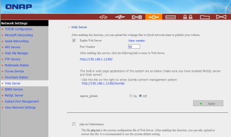 Comme bonus, QNAP propose une instance pré-installée de Joomla en version 1.5,. Joomla est un CMS qui permet de construire un site dynamique sans connaissance particulière.