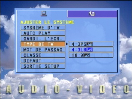Du côté règlage, seuls quelques paramètres sont disponibles. Ils sont répartis dans 2 écrans (format écran, langues, ...).