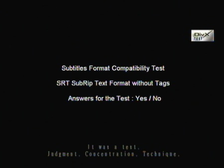 Les sous-titres texte utilisés en DivX sont également pris en charge par notre Radio CD (SRT, SUB, SSA, SMI) avec respect de nos lettres accentués. Notons cependant que l’écriture est assez difficile à lire en raison de la petitesse et de l’absence de détourage des sous-titres.