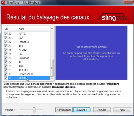 La Slingbox n’est pas compatible TNT HD et l’ordre des chaînes CSA n’est pas respecté. Ce problème reste mineur puisqu’il est par la suite possible de supprimer/réorganiser l’ordre des chaînes.
