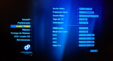 Vous pourrez régler dans cet écran la manière de décoder les différents codages audio DTS, AC3, AAC ou encore WMA Pro.