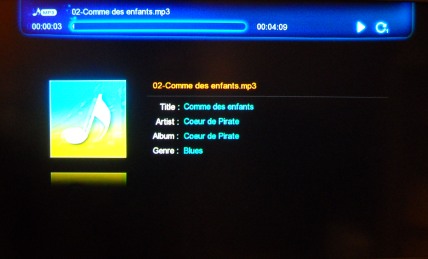 MP3, WMA, WAV, DTS, AC3, FLAC sont reconnus mais pas le OGG à cette date.