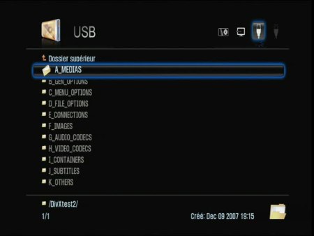 Sélection et lancement de la lecture d’un fichier, paramètres des menus, ... sont ainsi directement accessibles.