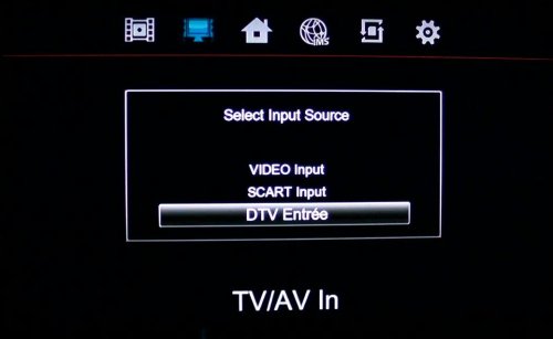 Pour regarder la TV, il faut utiliser le menu TV/AV IN. Il ouvre une fenêtre qui permet de choisir la source de l’image à visionner parmi celle du tuner TNT interne ou celle des entrées auxiliaires. Nous aurions aimé un raccourci direct vers la partie TNT.